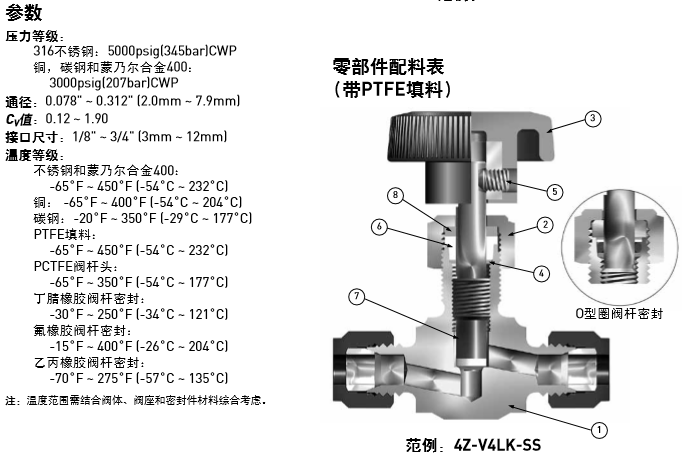 PARKER針閥強化的閥桿與冷加工閥體螺紋間形成硬度差可以利于提高閥門循環(huán)壽命 ,316不銹鋼,碳鋼,銅和蒙乃爾合金400材質可選,有PTFE材質填料和O型圈閥桿密封件可選,100工廠測試 。