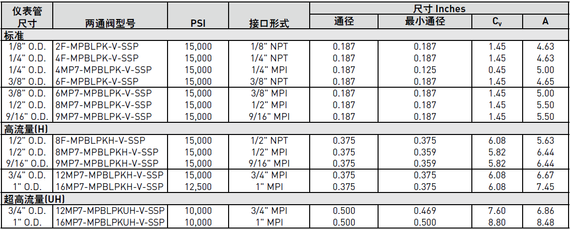 PARKER球閥MPB系列兩通產品參數: