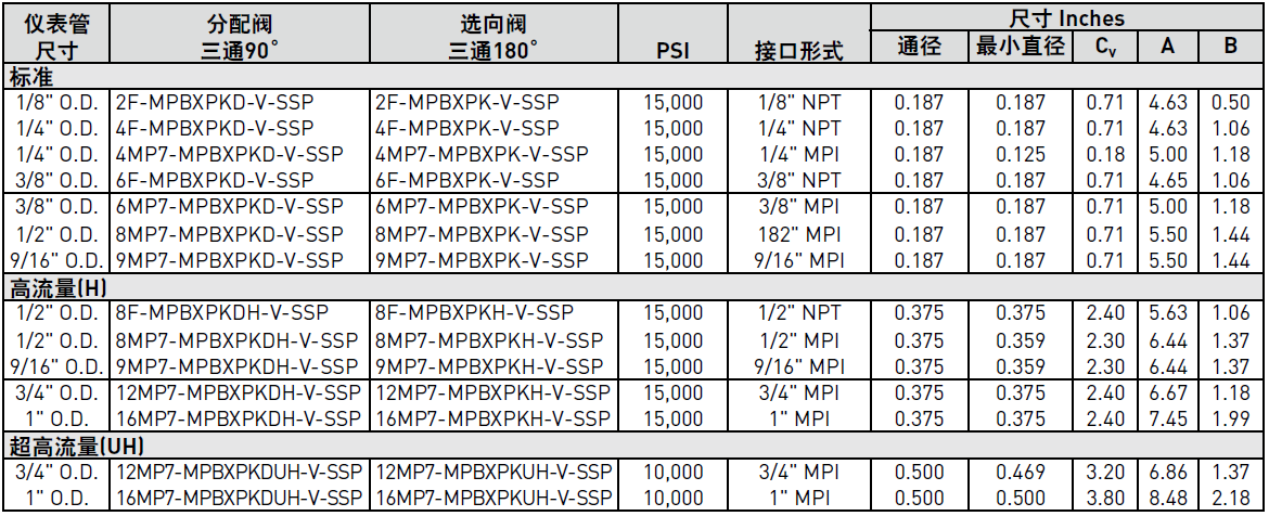 PARKER球閥MPB系列三通產品參數: