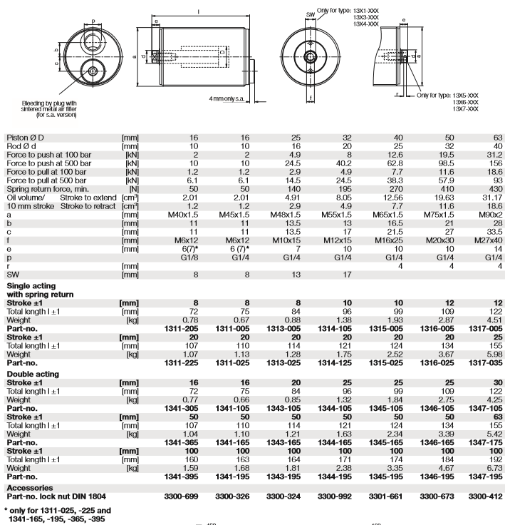 有單干和雙桿作用,*大工作壓力500 bar,應用螺紋體通用氣瓶可用作工件夾緊用夾緊氣缸以及一般夾持任務。 對于超過100°C的溫度,可提供帶VITON®密封件的型號。 在帶有2個鎖緊螺母或帶1個鎖緊螺母的螺紋孔的十字孔上進行固定。 鎖緊螺母允許氣缸在軸向上**定位。